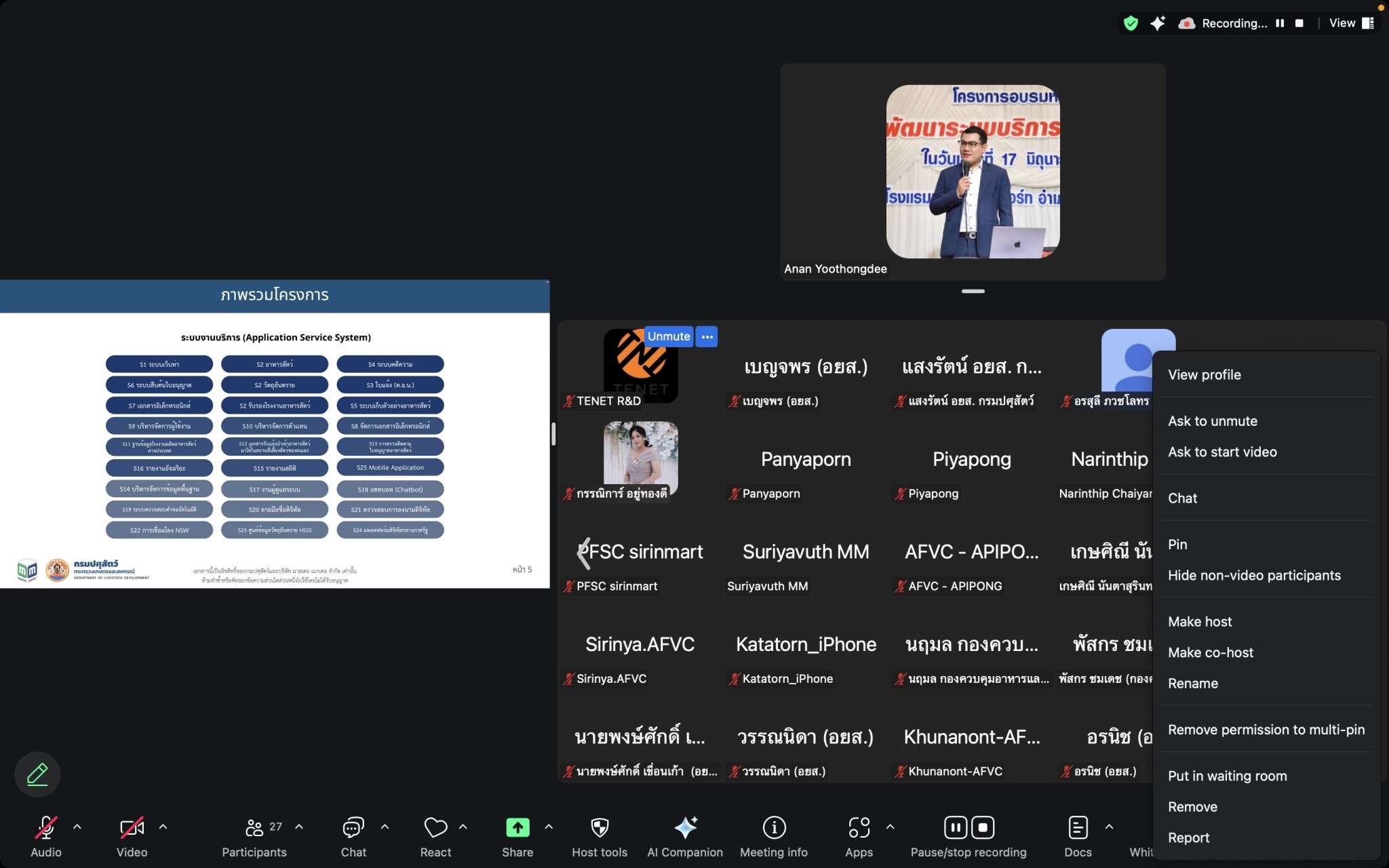 วันที่ 9 ธันวาคม 2568 นางสุดารัตน์ เจือจันทร์ ผู้อำนวยการกองควบคุมอาหารและยาสัตว์ มอบหมายให้ นายกิติศักดิ์ กลิ่นทอง หัวหน้าศูนย์สารสนเทศด้านอาหารสัตว์และวัตถุอันตราย ประชุมรับฟังความคิดเห็นและความต้องการการใช้งานระบบบริการอิเล็กทรอนิกส์ด้านอาหารสัตว์และวัตถุอันตรายด้านการปศุสัตว์ สำหรับเจ้าหน้าที่ส่วนกลาง ณ ห้องประชุม 1 ตู้คอนเทรนเนอร์ กองควบคุมอาหารและยาสัตว์ ศูนย์ราชการกรมปศุสัตว์จังหวัดปทุมธานี และประชุมผ่านสื่ออิเล็กทรอนิกส์ (Zoom Meeting) ซึ่งโครงการนี้ดำเนินการภายใต้ โครงการ เพิ่มประสิทธิภาพระบบบริการอิเล็กทรอนิกส์ด้านอาหารสัตว์และวัตถุอันตรายด้านการปศุสัตว์และการเชื่อมโยงข้อมูลระบบ National Single Window (NSW) ในรูปแบบ Single Submission