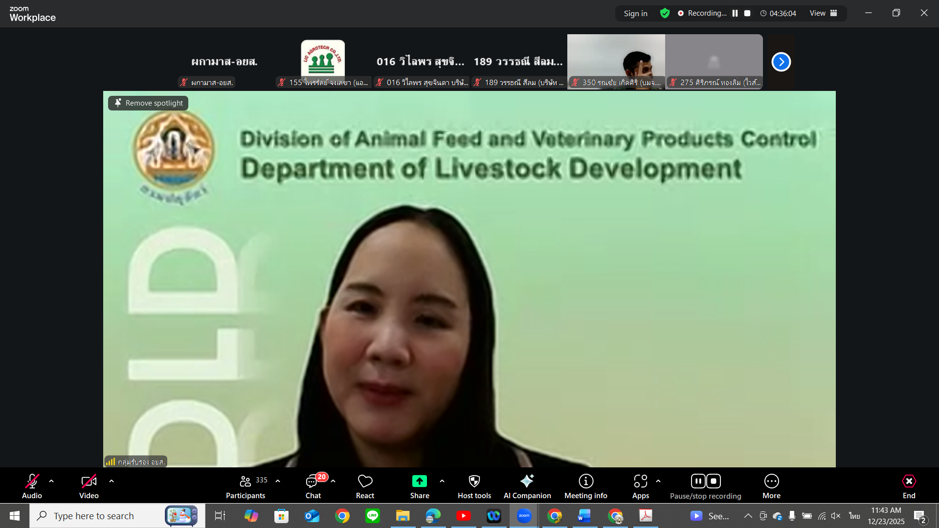 น.สพ. รักไทย งามภักดิ์ รองอธิบดีกรมปศุสัตว์ มอบหมายให้ สพ.ญ. สุดารัตน์ เจือจันทร์ ผู้อำนวยการกองควบคุมอาหารและยาสัตว์ เป็นประธานในการเปิดโครงการฝึกอบรมหลักสูตร GHPs/HACCP (CODEX) (Revised in 2022) สำหรับผู้ประกอบการอาหารสัตว์ ณ ห้องประชุมกองควบคุมอาหารและยาสัตว์ ผ่านสื่ออิเล็กทรอนิกส์ Zoom Meeting โดยมีวิทยากรจากกองควบคุมอาหารและยาสัตว์ ได้แก่ กลุ่มรับรองระบบประกันคุณภาพ และได้รับความอนุเคราะห์จาก สพ.ญ. ศิริสวัสดิ์ จันทร์ศรี หัวหน้ากลุ่มวัตถุอันตรายด้านการปศุสัตว์ ซึ่งมีผู้สนใจเข้าร่วมอบรมมากกว่า 400 ท่าน หัวข้อการอบรมในครั้งนี้ประกอบด้วย การตีความข้อกำหนด GHPs การตีความข้อกำหนด HACCP วัตถุอันตรายที่เกี่ยวข้องกับโรงงานผลิตอาหารสัตว์ ความรู้เบื้องต้นเกี่ยวกับการตรวจติดตามภายใน คู่มือการตรวจประเมินระบบ GHPs และ HACCP ในโรงงานผลิตอาหารสัตว์ และคู่มือการระบุขอบข่ายและการขอหมายเลข VCN.